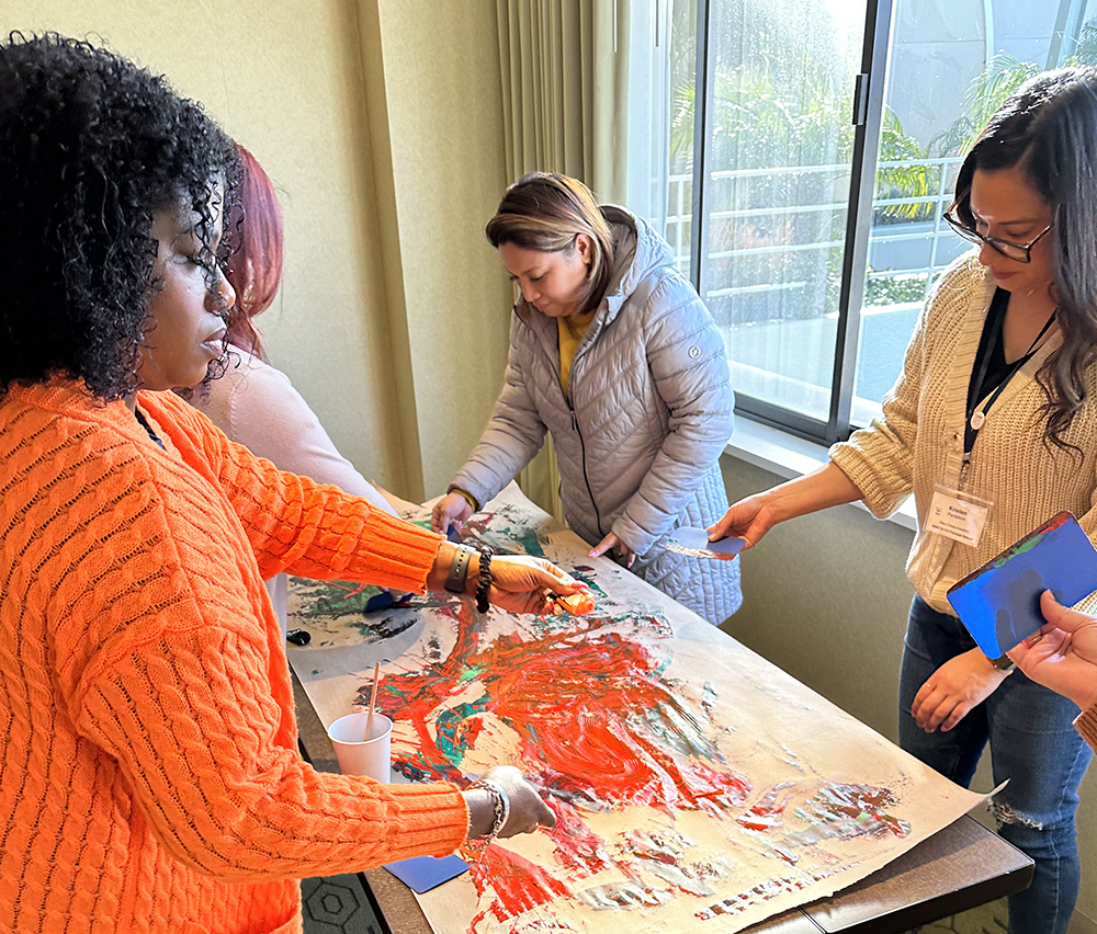 Day two began with a mindful painting moment to solidify key learnings from a reading, an activity that could be replicated at their school sites.