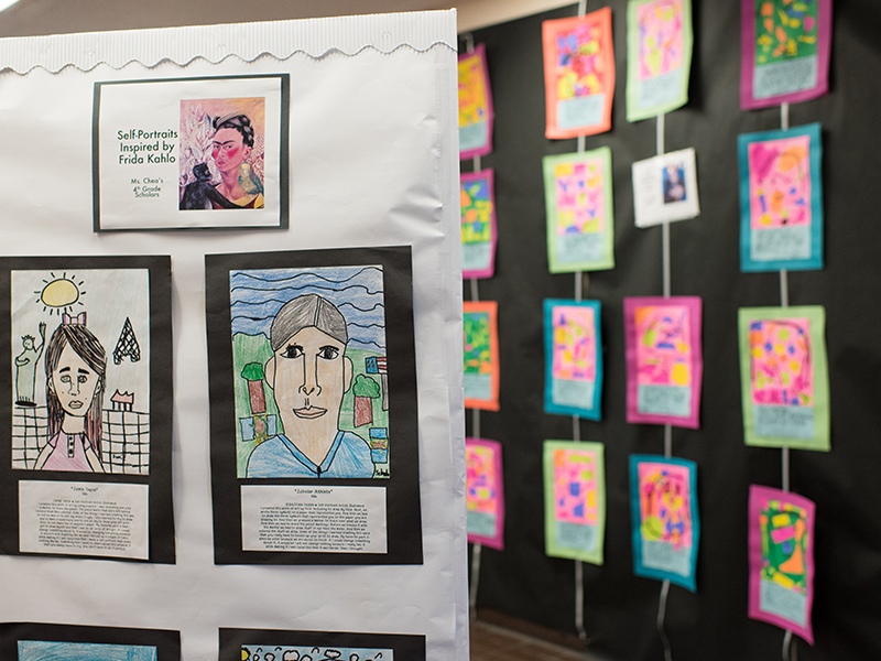 When I think back on this event, I remember the students reading their artist statements to their parents proudly and posing for pictures next to their self-portraits. I think of the multi-generational family pictures captured by the photographers. I hear a student telling his mom that Modigliani is famous for his long-necked portraits and another describing Frida Kahlo’s use of symbols. Most of all, I think of the positive energy that filled the beautiful gallery space. I am looking forward to continuing our journey as a Turnaround Arts: California partner school and finding more ways to celebrate our young artists and their families.