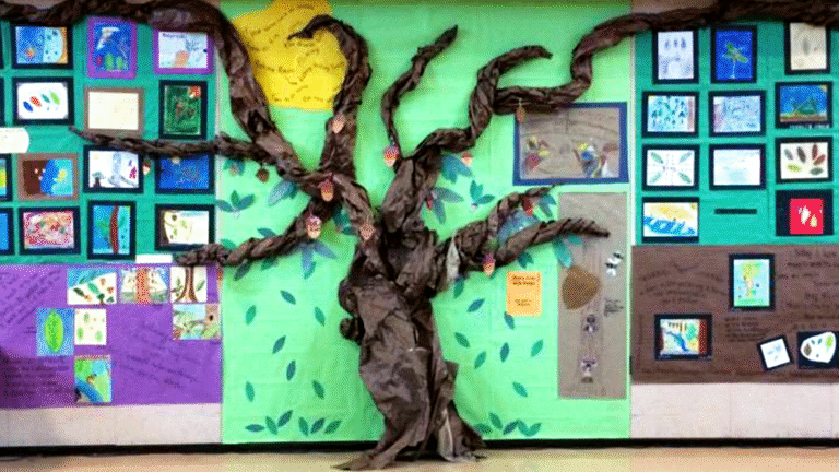 During the weeks when every student in the school was working on a self-portrait, you could feel excitement and creativity in the air. Kids were talking about their art and artists, showing each other what they had done, and feeling a sense of community knowing that they were part of a school-wide project. The teachers reported that students loved using new materials, trying new techniques, and learning how to create realistic self-portraits. They took pride in the work that they created, and this was amplified by seeing their self-portraits hanging on the beautiful displays that teachers created.
